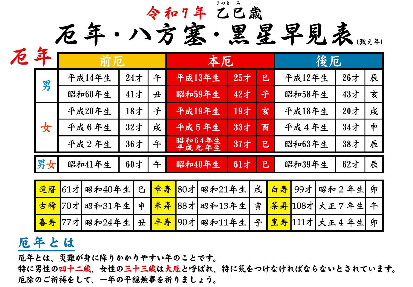 厄除早見表
